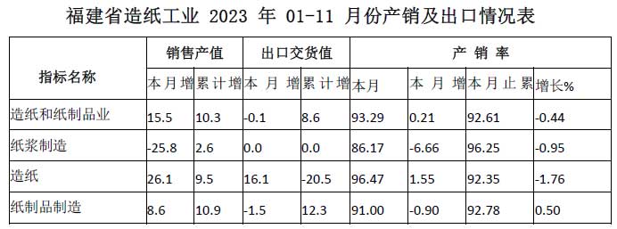 福建省造纸工业-2023-年-01-11-月份产销及出口情况表